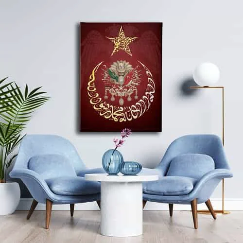 Ay Yildiz - Kelime-i Tevhid - Cift Basli Kartal - Osmanli Devlet Armasi Kanvas Tablo : Bu sik tablo, Desenlio'nun ozel koleksiyonunda yer alan premium bir tasarim urunudur. Kanvas Tablolar>arma Bayraklar kategorilerinde dikkat ceken bu parca, ABD106 urun koduyla yuksek standartlarda uretilmistir. Sanli Bayraklar Duvarlarinizda DalgalansinBir ulkenin en guzel temsillerinden biri bayragidir. Ofisiniz, eviniz veya siz neredeyseniz sanli bayraklardan olusan ve ozel olculerle uretilen kanvas tablolar ile duvarlariniz ulkenizden bir parca tasisin.Osmanli Devlet Armasi Kudretin SimgesidirOsmanli Devleti’nin gucunu hissetmek, gelen misafirlerinize bu gucu hatirlatmak icin Osmanli Devlet Armasi kan... Yasam alanlariniza sanatsal bir dokunus katmak ve duvarlarinizda estetik bir odak noktasi olusturmak icin idealdir.