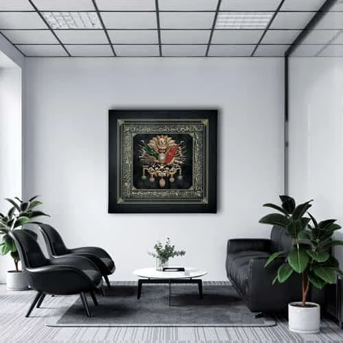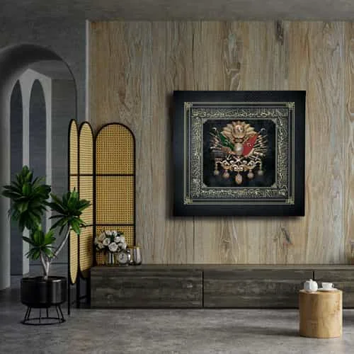 Ayet - El Kursi Osmanli Devlet Armasi Kanvas Tablo : Bu sik tablo, Desenlio'nun ozel koleksiyonunda yer alan premium bir tasarim urunudur. Kanvas Tablolar>cami Turbe Kutsal Emanet, Kare Gorseller kategorilerinde dikkat ceken bu parca, ABK105 urun koduyla yuksek standartlarda uretilmistir. Sanli Bayraklar Duvarlarinizda DalgalansinBir ulkenin en guzel temsillerinden biri bayragidir. Ofisiniz, eviniz veya siz neredeyseniz sanli bayraklardan olusan ve ozel olculerle uretilen kanvas tablolar ile duvarlariniz ulkenizden bir parca tasisin. Osmanli Devlet Armasi Kudretin SimgesidirOsmanli Devleti’nin gucunu hissetmek, gelen misafirlerinize bu gucu hatirlatmak icin Osmanli Devlet... Yasam alanlariniza sanatsal bir dokunus katmak ve duvarlarinizda estetik bir odak noktasi olusturmak icin idealdir.