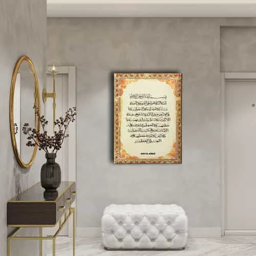 Ayet-el Kursi Tezhipli Dini Kavas Tablo: Bu sik tablo, Desenlio'nun ozel koleksiyonunda yer alan premium bir tasarim urunudur. Dini>ayetler Ve Sureler kategorilerinde dikkat ceken bu parca, AYD145 urun koduyla yuksek standartlarda uretilmistir. Guzel Dilekler Ayetlerde GizliNazar Duasi, Bereket Duasi, Ayet-El Kursi kanvas tablolari ile dualar evinizden ve ofisinizden eksik olmasin. Kiymetli dualardan olusan kanvas tablolar ile hem evinizi/ofisinizi dekore edin, hem de dualarin kiymetli gucunu cevrenizden eksik etmeyin.... Yasam alanlariniza sanatsal bir dokunus katmak ve duvarlarinizda estetik bir odak noktasi olusturmak icin idealdir.