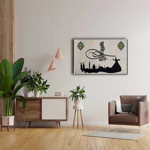 Besmele-i Tugra Tablo: Bu sik tablo, Desenlio'nun ozel koleksiyonunda yer alan premium bir tasarim urunudur. Kanvas Tablolar>mevlana kategorilerinde dikkat ceken bu parca, MEVY104 urun koduyla yuksek standartlarda uretilmistir. Mevlana ve Semazen TablolariMevlana ve Semazenlerin verdigi huzur duvarlariniza yansisin. Mevlana kanvas tablolar ve semazen kanvas tablolar ile huzuru hep cevrenizde hissedin. Ozel olculeriyle uretilen kanvas tablolar sizleri bekliyor.... Yasam alanlariniza sanatsal bir dokunus katmak ve duvarlarinizda estetik bir odak noktasi olusturmak icin idealdir.