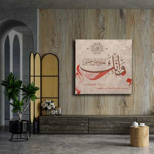 Kalem Suresi 4.ayet Hat Tablo: Bu sik tablo, Desenlio'nun ozel koleksiyonunda yer alan premium bir tasarim urunudur. Kanvas Tablolar>cami Turbe Kutsal Emanet, Kare Gorseller kategorilerinde dikkat ceken bu parca, HATK123 urun koduyla yuksek standartlarda uretilmistir. Sira Disi DokunuslarDekorasyonunuza farkli ve alisilmisin disinda dokunuslar yapmak istiyorsaniz, ozel olculerde uretilen hat ve tezhip gorsellerinden olusan kanvas tablolar tam da aradiginiz dokunuslar olacaklar.... Yasam alanlariniza sanatsal bir dokunus katmak ve duvarlarinizda estetik bir odak noktasi olusturmak icin idealdir.