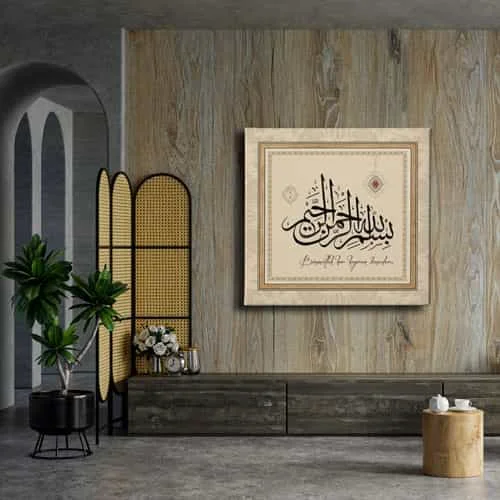 Besmele Motifli Hat Tablo: Bu sik tablo, Desenlio'nun ozel koleksiyonunda yer alan premium bir tasarim urunudur. Kanvas Tablolar>cami Turbe Kutsal Emanet, Kare Gorseller kategorilerinde dikkat ceken bu parca, HATK115 urun koduyla yuksek standartlarda uretilmistir. Sira Disi DokunuslarDekorasyonunuza farkli ve alisilmisin disinda dokunuslar yapmak istiyorsaniz, ozel olculerde uretilen hat ve tezhip gorsellerinden olusan kanvas tablolar tam da aradiginiz dokunuslar olacaklar.... Yasam alanlariniza sanatsal bir dokunus katmak ve duvarlarinizda estetik bir odak noktasi olusturmak icin idealdir.