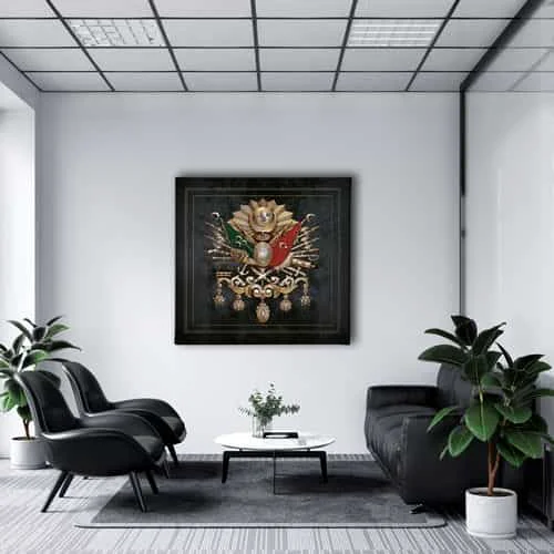 Osmanli Devlet Armasi Kanvas Tablo : Bu sik tablo, Desenlio'nun ozel koleksiyonunda yer alan premium bir tasarim urunudur. Kanvas Tablolar>cami Turbe Kutsal Emanet, Kare Gorseller kategorilerinde dikkat ceken bu parca, ABK100 urun koduyla yuksek standartlarda uretilmistir. Sanli Bayraklar Duvarlarinizda DalgalansinBir ulkenin en guzel temsillerinden biri bayragidir. Ofisiniz, eviniz veya siz neredeyseniz sanli bayraklardan olusan ve ozel olculerle uretilen kanvas tablolar ile duvarlariniz ulkenizden bir parca tasisin. Osmanli Devlet Armasi Kudretin SimgesidirOsmanli Devleti’nin gucunu hissetmek, gelen misafirlerinize bu gucu hatirlatmak icin Osmanli Devlet... Yasam alanlariniza sanatsal bir dokunus katmak ve duvarlarinizda estetik bir odak noktasi olusturmak icin idealdir.